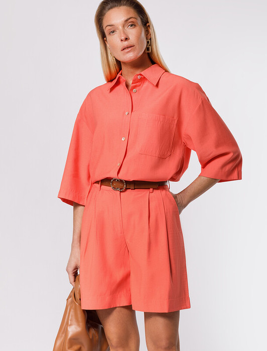 Vilatte Шорты из плотного лиоцела на резинке D28.054 коралловый