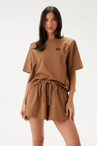 Шорты выполнены из тонкого футера с эластаном. Модель дополнена двумя боковыми разрезами. Без карманов. Эластичный пояс на резинке и посадка на талии регулируется шнуром из 100% хлопка. Соберите свой комплект вместе с худи D49.925 и свитшотом D49.922 или носите отдельно.