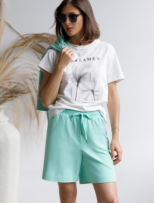 Совместные покупки Симферополь Женская одежда Шорты — Vilatte Шорты из тонкого премиального футера с эластаном D48.008 мятный