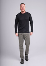 Свитер с узором полосы выполнен из хлопковой пряжи с добавлением акрила. Теплая модель фактурной крупной вязки с воротом, застегивается металлической молнией. Регулируя ворот можно носить с рубашками, футболками и водолазками. Кроме того, свитер совершенно не колется, поэтому его комфортно носить даже на голое тело. Внизу изделия нашивка бренда из эко-кожи.
