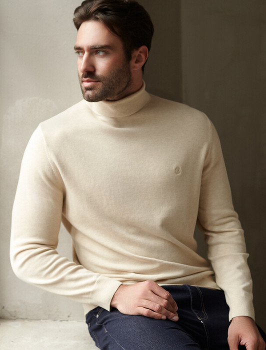 ESENIA Свитер мужской полушерстяной тонкой вязки - Белый