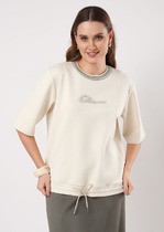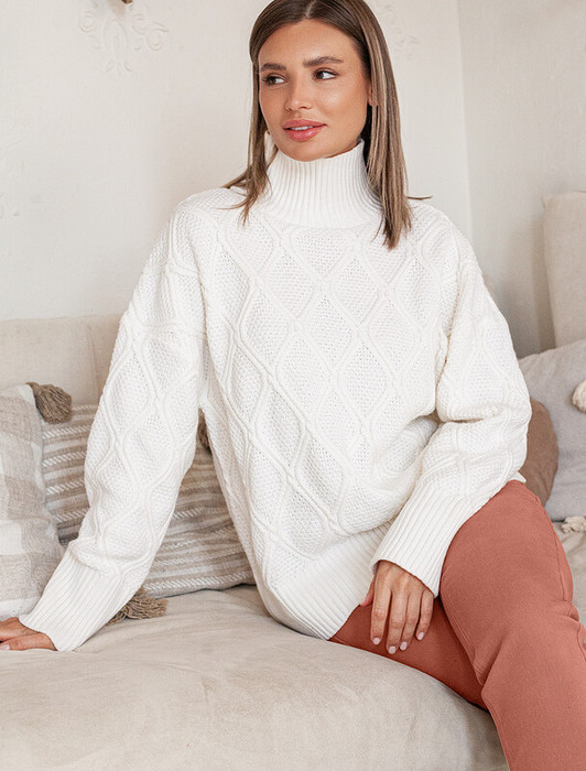 Совместные покупки Симферополь Женская одежда Джемперы, свитеры, водолазки — Vilatte Свитер из мягкой пряжи крупной резной вязки D34.183 белый