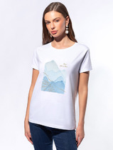 Vilatte Футболка из эластичного хлопка с принтом стразы D49.097 белый_акварель