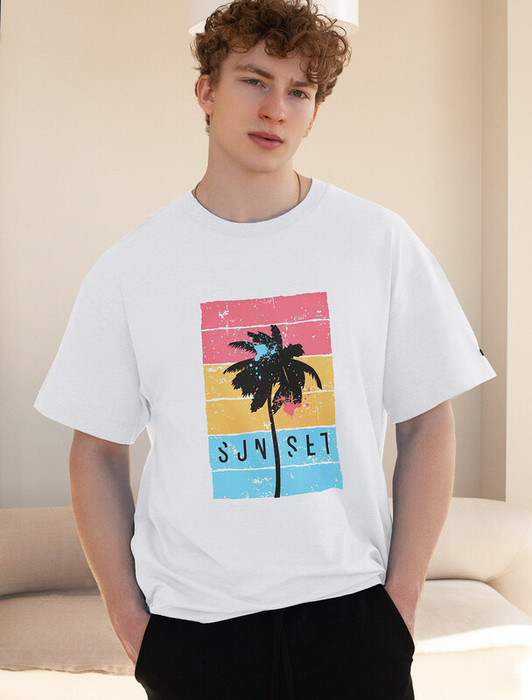 22.03 Vilatte Свободная футболка с авторским принтом U49.048 белый_sunset