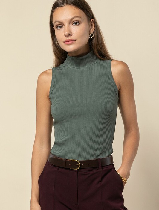 Vilatte Топ из трикотажа в широкий рубчик D43.173 св.оливковый