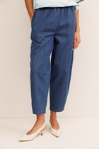 Свободные брюки из трикотажного костюмного полотна. Эластичный пояс на резинке с регулируемым шнурком из эко-кожи комфортно фиксирует изделие на талии.  Модель дополнена двумя боковыми и задним карманами.
