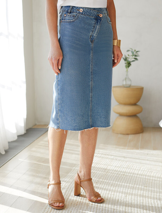 Заказать Vilatte Юбка с ассиметричной застежкой из эластичного денима D56.119 синий
