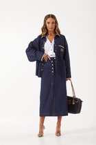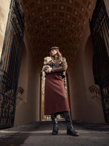 Юбка силуэта полусолнце выполнена из эластичного футера двухнитки. Модель дополнена высоким разрезом спереди и поясом на резинке. Эластан в составе изделия гарантирует комфорт и формоустойчивость. Сочетайте в комплекте с свитшотом D49.072 и паркой D49.076