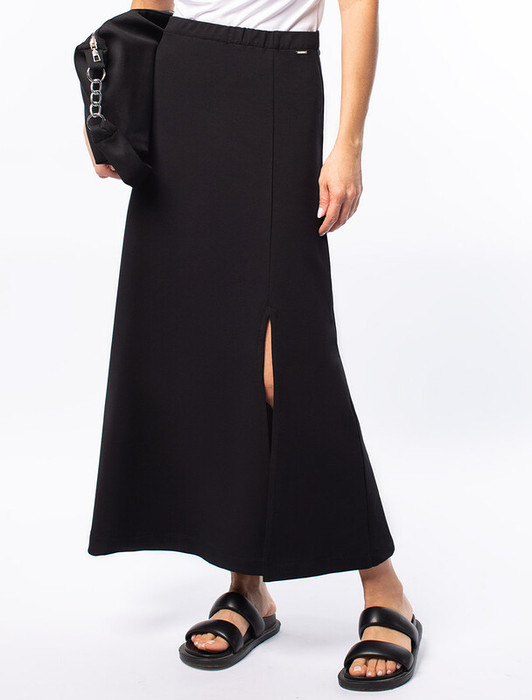 Vilatte Юбка с разрезом из тонкого премиального футера с эластаном D46.034 черны