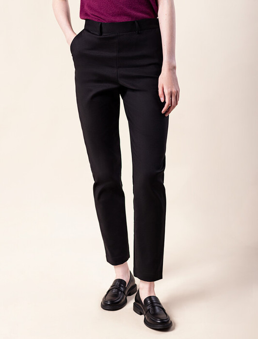 Брюки выполнены из плотной эластичной хлопковой ткани с нейлоном. Зауженная модель визуально вытягивает силуэт и стройнит ноги. Плотная и при этом эластичная ткань отлично держит форму в течении всего дня гарантируя абсолютный комфорт, не сковывая движений.