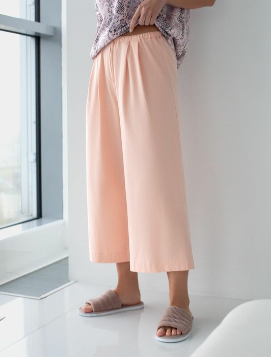 Совместные покупки Симферополь Женская одежда Домашняя одежда — Vilatte Укороченные широкие брюки кюлоты на резинке из 100% хлопка D44.163 пудра