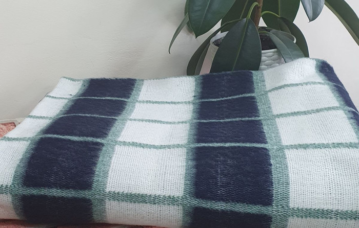 Совместные покупки Симферополь Товары для дома и дачи Подушки, одеяла — ВЛАДЛЕН Одеяло полушерстяное (50% Шерсть) Клетка Бело-Сине-Зелёная