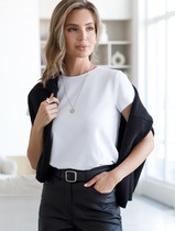 Футболка из плотного трикотажа в рубчик с V-образным вырезом
