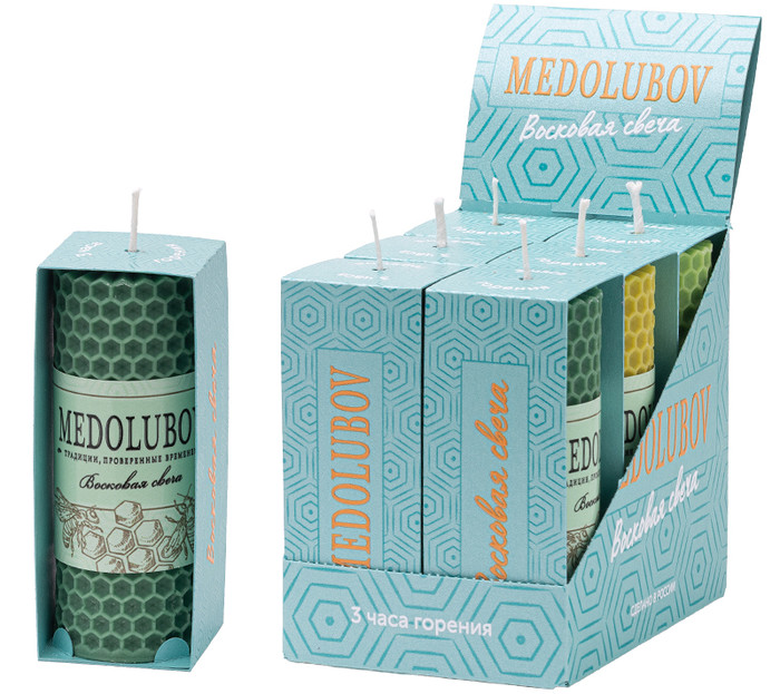 Восковая Свеча МЕДОЛЮБОВ Бирюза