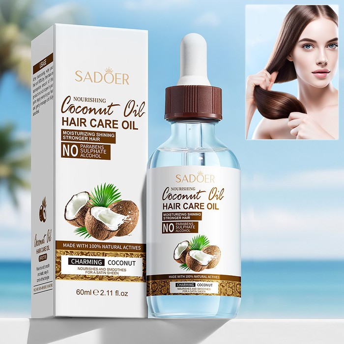 Восстанавливающее масло для волос с Кокосом укрепление и питание Sadoer, 60 мл.