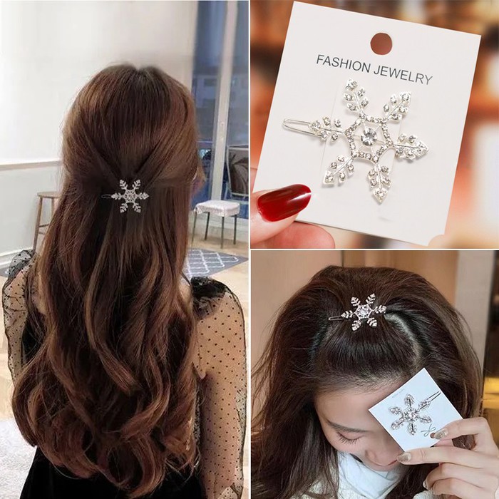 Стильная заколка для волос в форме снежинки обеспечивает прочное крепление без повреждения волос и сохраняет прическу в течение всего дня.Очаровательное лаконичное украшение способное дополнить любой образ.Снежинка на заколке зажиме - это эффектное украшение для новогодних праздников!Размер декоративной части: 4,3 см.Материал: металл, стразы.