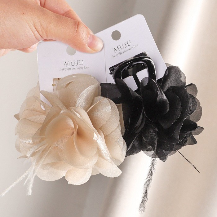 Заколка-краб для волос с цветком и перьями, 8 см.