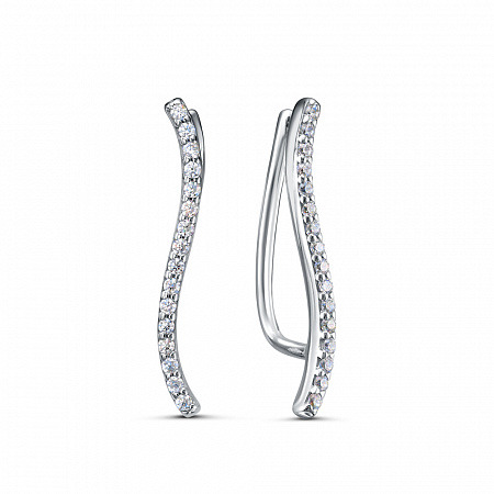 Серьги из серебра с культ. белым жемчугом и фианитами родированные