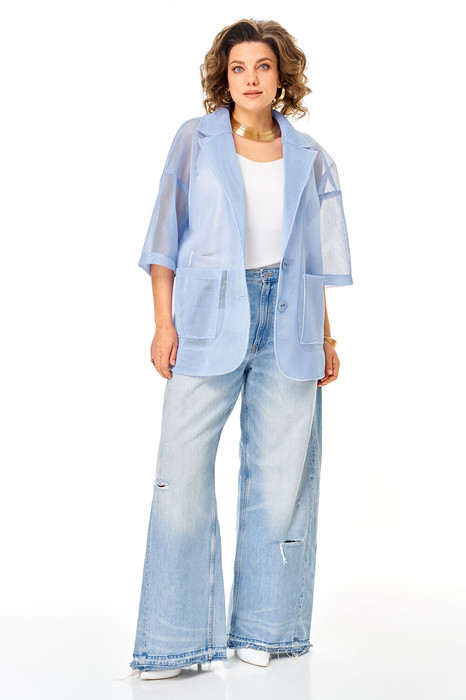 Жакет женский из оригинального трикотажного полотна, напоминающего объемные соты, станет отличным дополнением к вашему гардеробу. Модель прямого силуэта со спущенным рукавом, рукав 3/4 длины, застежка на пеллю и пуговицу, воротник пиждачного типа. По полочке идут накладные карманы, низ фигурный.  Все шва и срезы не обработаны. Длина рукава: (50-66)-28см. Длина  по спинке : (50-54)-76см., (56-60)-78см, (62-66)-80 см