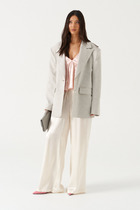 На модели в жакете "сумрачный леопард" юбка 1510, брюки из атласа 1425.1 и брюки из эко кожи 1400.2.