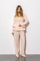 Жакет выполнен из костюмной ткани черного цвета с цветочной вышивкой. Характеристика: укороченный жакет, отложной воротник с острым лацканам, центральная застежка на петлю-пуговицу, брендированный подклад, рукав втачной, чуть спущенный, подплечники, на манжете три пуговицы. Длина рукава от края горловины 79см, длина жакета по спинке 43см.