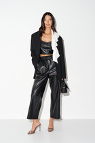 Жакет однобортный прямого свободного кроя, выполнен из текстильного полотна черного цвета. Характеристики: брендированная подкладка, подплечники, воротник с остроугольным лацканом, застежка центральная на петли пуговицы, по переду карманы с клапаном, рукав втачной, спинка со средним швом, по низу изделия лацкан 29см, в комплекте пояс из ткани основного изделия. Длина жакета по спинке 78 см, длина рукав 64см.