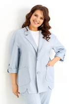 Двубортный жакет на подкладке, прямого силуэта. Обработаны прорезные карманы по переду. Рукава втачные одношовные, обработаны шлицей