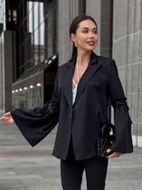 Жакет однобортный свободного силуэта, обработан подкладкой. Рукав втачной, расклешенный, одношовный. По рукаву настрочены рюши из основной ткани. Объём присборенных рюш распределен равномерно. Данный жакет дополнит любой образ, выделит среди всего разнообразия