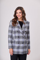 Жакет однобортный,  на подкладке, выполнен из эко-замши. Обработан молнией разъёмной молнией по центру переда, закрывающейся планкой с пуговицами. Воротник тложнй, рубашечного типа. Рукава втачные одношвные, прямые. По  передним половинкам обрабтаны накладные карманы с клапаном.
