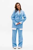 Жакет однобортный свободнго силуэта. Жакет обработан подкладкой. Рукав прямой, длинный, втачной, отрезной с пришитой присборенной деталью, шнурком из основной ткани для завязывания.