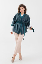 Жакет в благородном цвете эспрессо создан для элегантного и женственного образа. Классический воротник повторяет V-образную форму, делает акцент и визуально удлиняет шею, а приталенный крой подчёркивает линии силуэта. Декоративные золотистые пуговицы делают образ более рокошным и праздничным.
