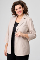 Жакет женский удлиненный, из текстильной ткани, на подкладке, полуприлегающего силуэта с центральной бортовой застежкой на пуговицы до линии перегиба лацкана. Спереди рельефные швы от плечевого шва, отрезной бочок и карман с клапаном. Спинка с рельефами от плечевого шва. Рукав втачной, двухшовный, по низу рукава обработана шлица на петли-пуговицы. Воротник пиджачного типа. Длина по спинке 66 см, длина рукава 62 см. К жакету рекомендуем брюки 596-арт. 2 79 22