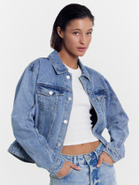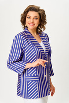 Жакет женский удлиненный, полуприлегающего силуэта с центральной бортовой застежкой на пуговицы до линии перегиба лацкана. Спереди рельефные швы от плечевого шва, отрезной бочок и карман с клапаном. Спинка с рельефами от плечевого шва. Рукав втачной, двухшовный, 3/4, с небольшим разрезом в локтевом шве. Воротник пиджачного типа. Жакет выполнен из джинсовой ткани. Перед жакета на подкладке. Длина рукава 50 см, длина по спинке 68 см
