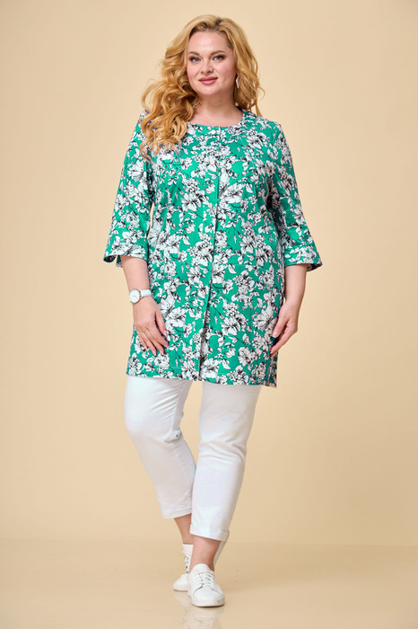 Жакет БелЭльСтиль 756 зелено белые цветы