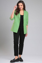 Жакет женский полуприлегающего силуэта выполнен из костюмной ткани в клетку с добавлением эластана на подкладке.  Воротник сложного кроя с завязками и  пуговицами, рукав двухшовный с разрезом, на полочке обработаны функциональные карманы с листочкой. Длина жакета 75 см, длина рукава 53 см.