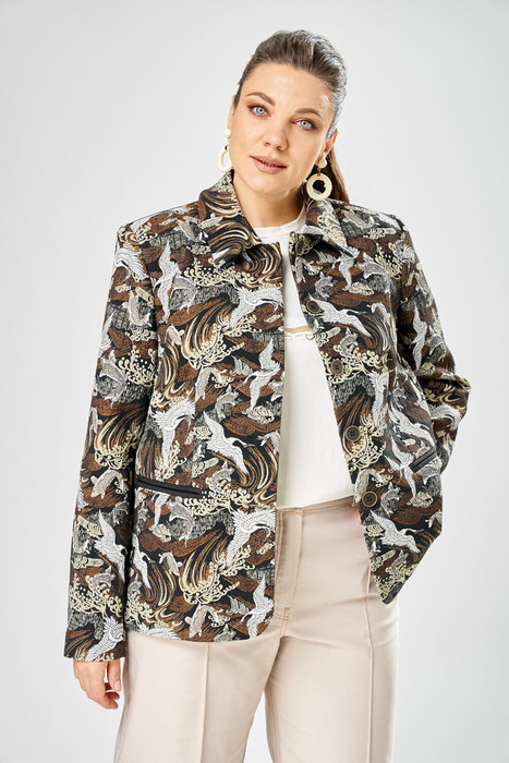 Стильный женский жакет из жаккардовой ткани с актуальным принтом.