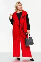 Жакет укороченный прямого силуэта, двубортный с втачным двухшовным рукавом. Полочка с застежкой на петлю-пуговицу и имитацией кармана с клапаном и отрезным бочком. Спинка с отрезным бочком и центральным швом. Воротник пиджачного типа с отрезной стойкой. Жакет на подкладке.