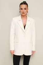 Жакет, укороченный прямого силуэта, двубортное с втачным двухшовным рукавом. Полочка с застежкой на петлю-пуговицу и имитацией кармана с клапаном. Спинка с центральным швом. Жакет с отрезным бочком, переходящим на полочку и на спинку. Воротник пиджачного типа с отрезной стойкой. Жакет на подкладке.