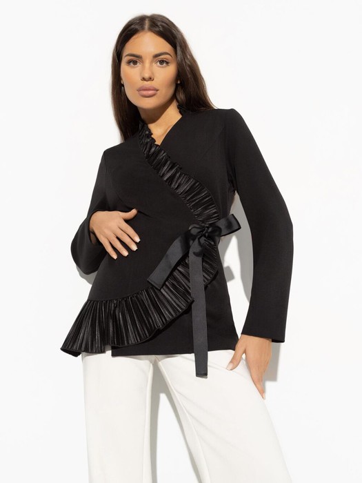 На торжественном вручении грамот детям в школе ты стоишь в центре на всех фотографиях. В жакете CHARUTTI ты стала звездой не только среди родителей и школьников, но и среди педагогического состава. Прекрасное воспитание, как и прекрасный вкус у тебя не отнять. Жакет приталенного силуэта. Акцентная линия запаха изделия. Застежка оформлена атласной лентой.