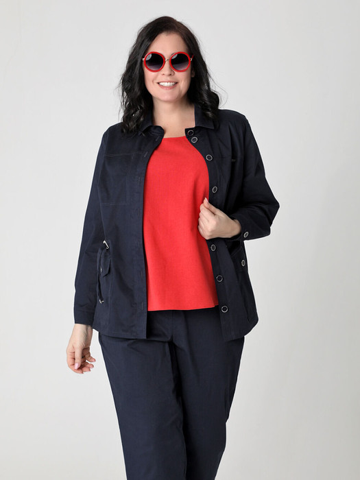 Летний жакет-рубашка без подкладки на пуговицах дополнит гардероб современных женщин и девушек любого возраста. Стильный женский жакет прямого силуэта - одежда, которая никогда не выходит из моды. Кулиска позволяет подчеркнуть талию. Низ втачного рукава оформлен манжетой. Есть накладные карманы с двумя входами, с клапаном. Воротник - на стойке, рубашечного типа. Этот легкий пиджак хорошо сочетается с юбками, брюками и платьями. Его удобно носить с кроссовками или туфлями. Это базовая одежда, которая будет хорошо смотреться в любой ситуации. Большой размерный ряд позволяет без труда подобрать нужный вариант. Такая модная рубашка хорошо сочетается с блузкой (арт. 25232) и с классическими узкими брюками (арт.25240) из нашей летней коллекции. Собирайте свои образы, дополняйте их яркими аксессуарами и наслаждайтесь комфортом в летние дни!