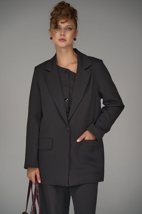 Фасон и детали: утончённый крой, чёткие линии, аккуратные швы — всё выполнено, чтобы подчеркнуть фигуру, но не сковывать движения. Лацканы правильной ширины, плечи умеренной степени — баланс между формальным и повседневным стилем.