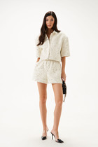 Жакет полуприлегающего силуэта, на подкладке; воротник пиджачного типа; рукава втачные; по переду функциональные прорезные карманы; застежка двубортная на петли и пуговицы.