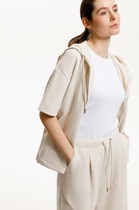 Жакет с центральной застежкой на петли и пуговицы, без воротника. По переду с талиевыми вытачками. Спинка со средним швом,талиевыми вытачками. Рукав втачной, длинный со шлицей и застежкой на петлю и пуговицу.