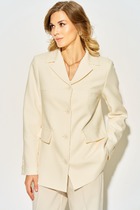 Жакет женский прямого силуэта с центральной бортовой застежкой на петли и пуговицы. По переду обработаны нагрудные вытачки, рельефы, справа прорезной карман с клапаном и листочкой (клапан декорирован нашивкой). Слева расположена настрочная «вытрепанная» деталь с накладным карманом и клапаном, застегивающимся на петлю и пуговицу. Спинка с «вытрепанной» кокеткой, на которой расположена декоративная нашивка. Нижняя часть спинки с отстрочными «вытрепанными» рельефами. Рукав длинный 2-х шовный отстрочной, с имитацией шлицы, декорированной пуговицами. Воротник пиджачного типа с отрезной стойкой. Воротник, подборт и декоративная «вытрепанная» деталь с накладным карманом и клапаном выполнены из ткани-компаньона. Декоративные элементы и фурнитура могут отличаться от заявленных на фото. Цвет материала может отличаться по тону в зависимости от настроек вашего монитора!