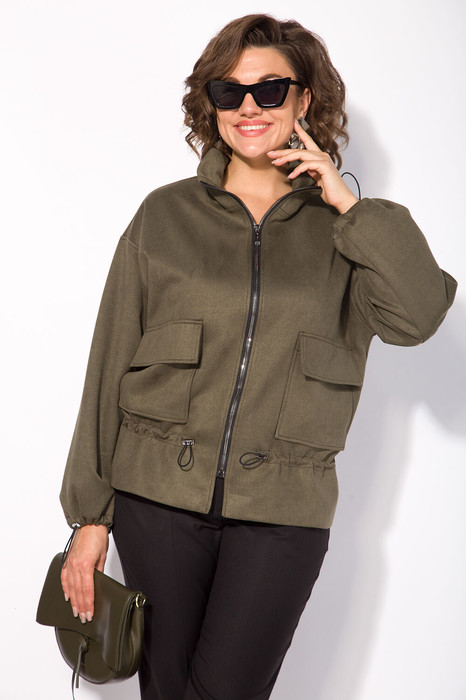 Откройте для себя идеальный женский жакет — универсальную вещь, которая подчеркнет ваш стиль и добавит уверенности! Модель свободного силуэта, на спущенной линией плеча. Рукав полной длины, с кулиской по низу. Воротник – стойка, переходящая в застежку молнию.  По полочке расположены накладные карманы с клапаном. Чуть ниже линии талии расположена кулиска для более комфортного прилегания! Изделие на шелковой подкладке.