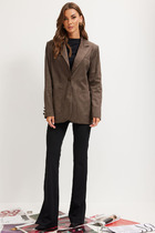 Жакет прямого силуэта и выполнен из нежного трикотажного полотна. Рукав втачной длинный, по верхней части рукава встречная складка. Округлый вырез горловины. Застежка на петли и пуговицы. Брошь-цветок съемная.