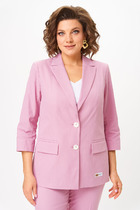 Жакет прямого силуэта с имитацией центральной застёжки на пуговицы. Рукав втачной одношовный, длиной три четверти,застегивающийся на пату. Воротник пиджачного типа . Линия низа фигурная, симметричная . По левому переду расположена декоративная деталь.