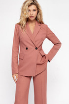 Оверсайз жакет из фактурной ткани. Детали: жакет прямого силуэта, расширенная линия плеч, пиджачный воротник, перед с прорезными функциональными карманами, однобортная застежка на петли и пуговицы, спинка со средним швом и шлицей, рукава втачные двухшовные, жакет на подкладке.