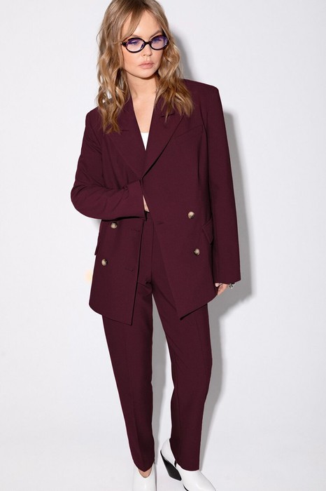 Детали: жакет свободного покроя и полуприлегающего силуэта, двубортная застежка на петли и пуговицы, отрезные бочки, пиджачный воротник, функциональные карманы, жакет на подкладке.