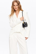Удлиненный приталенный жакет из штруксовой ткани.